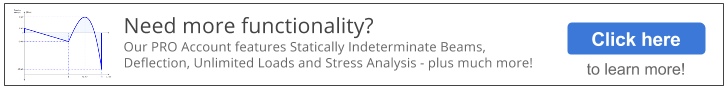 We appreciate your support and feedback, so if you have any questions or concerns please let us know on our Feedback pages. The calculator can accommodate up to 2 point loads, 2 distributed loads and 2 moments on a single beam, which will allow you to enter any number of combinations of loads that you may be asked in a single beam analysis question. The calculations are only set to draw the shear force and bending moment of a beam at the moment. If you need a free frame calculator or free truss calculator, there are a range of other free tools available at SkyCiv. If you found this tool useful please like it and share it with your friends on Facebook. |